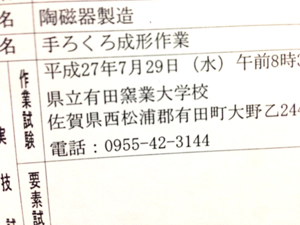 受験者の減少などで、試験が開催されること自体、なんと今回が最後。わたしが受けるのは磁器ロクロの1級です。
