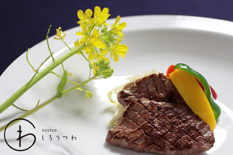 料理は伊万里牛のステーキ。季節を意識して華やかに演出していただきました。